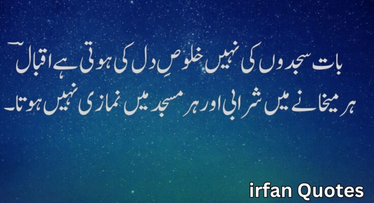 Urdu Quotesبات سجدوں کی نہیں خلوصِ دل کی ہو تی ہے اقبالؔ ہر میخا نے میں شرابی اور ہر مسجد میں نمازی نہیں ہو تا۔ March 1, 2025 بات سجدوں کی نہیں خلوصِ دل کی ہو تی ہے اقبالؔ ہر میخا نے میں شرابی اور ہر مسجد میں نمازی نہیں ہو تا۔